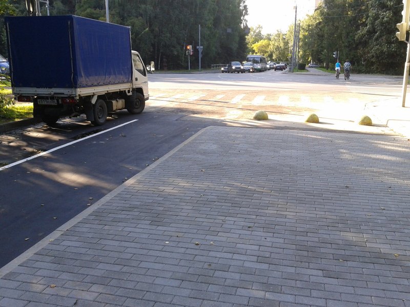 3) Сомнение вызывает разуклонка: тротуар с асфальтом наклонен к плитке, плитка навстречу - к тротуару. Т.е. получается хороший желоб, в котором будет собираться вода. Если бы сделали бы на стыке двух поверхностей водосток - вопросов бы не было.