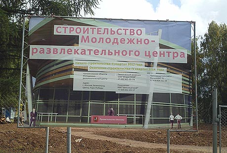 Самодеятельный информационный щит на стройке в парке Победы (нажмите, чтобы увеличить)