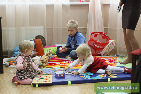 Детишки на коврике с игрушками - это начало программы; те, кто пришел пораньше, ждали начала концерта.