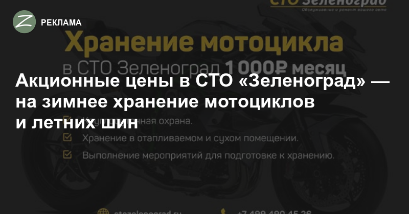 Если вы открыли эту новость — то поздравляем вас, теперь вы знаете, что до конца ноября сможете воспользоваться услугами хранения мотоцикла и летних шин всего по 1000 рублей в месяц .