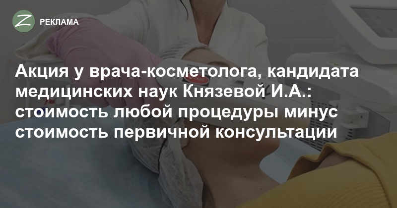 Если вы приходите на любую процедуру к Князевой Ирине Александровне в течение месяца после первичного приема, то из стоимости любой процедуры вычитается стоимость приема, который вы уже оплатили.