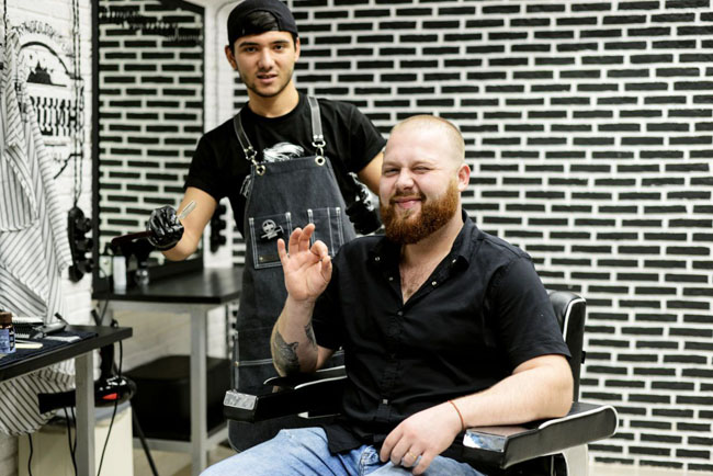 А сейчас в TopGun появились и девушки-барберы, и мужчины с удовольствием приходят к ним не только за стрижкой, но и за услугой премиального ухода для лица. Эта новая для барбершопа релакс процедура проводится в пять этапов с помощью премиальных британских косметических средств. Маска с минералами и витаминами, а также увлажняющая сыворотка с гиалуроновой кислотой подтягивает кожу лица и разглаживает морщины.