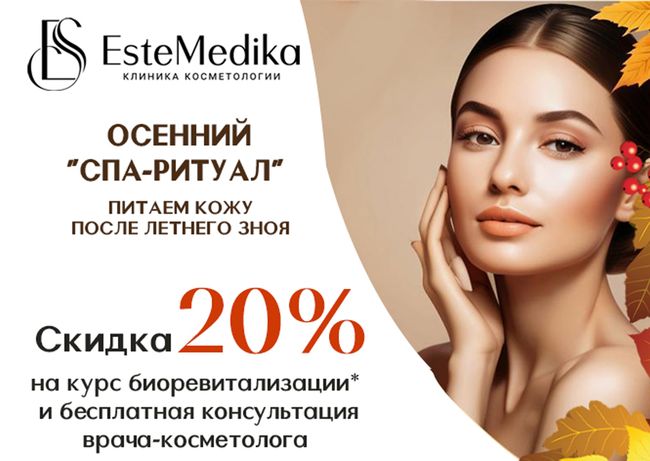 Этой осенью для вас подарок — курс биоревитализации со скидкой 20%.
