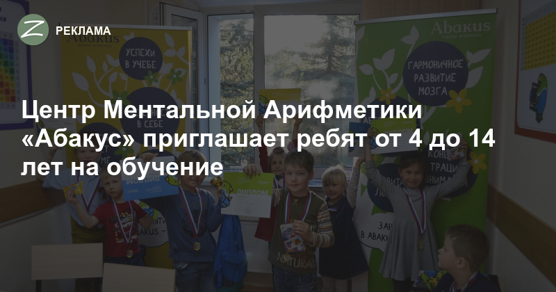 Ребят от 4 до 14 лет приглашает на обучение в Центр Ментальной Арифметики «Абакус». Уже третий год в центре открывают в студентах удивительные способности счета, тренируют их внимание, логику и память, развивают воображение! Самые сильные ученики уже готовятся к участию к Международной Олимпиаде по ментальной арифметике, а тем временем проводятся открытые бесплатные уроки по понедельникам, средам и субботам для набора ребят на первый курс!
