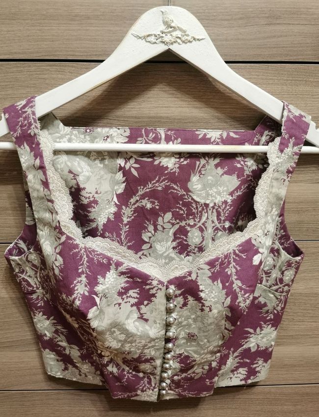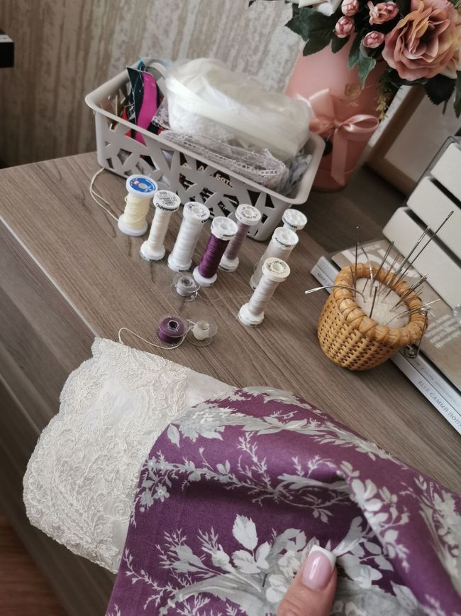 Чаще всего эту ткань используют в технике пэчворк (лоскутное шитьё), но каждый «художник» может увидеть в ней и свои мотивы, так Оксана увидела в ней, что-то роскошное и изящное — как в эпоху времён королев.