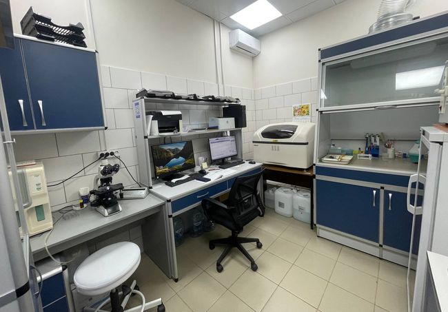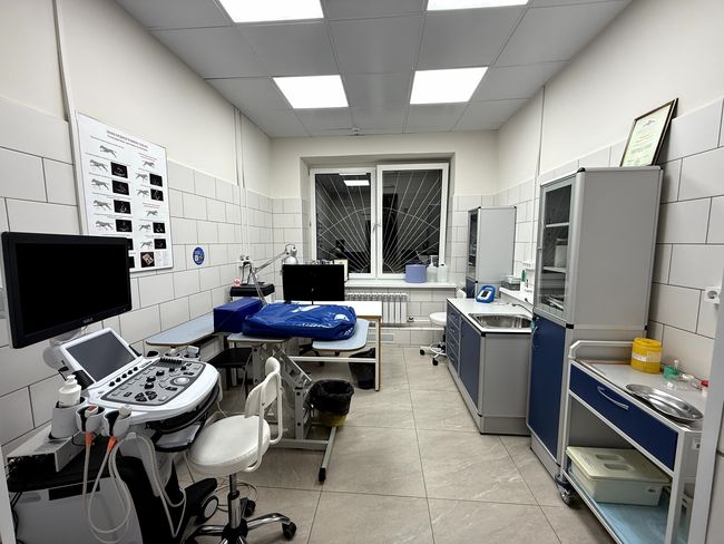Оснащена современным оборудованием: ультразвуковые аппараты, цифровой и дентальный рентген, современная стоматологическая стойка, аппарат ингаляционной анестезии, аппарат искусственной вентиляции лёгких, современный стационар, камеры оксигенотерапии.