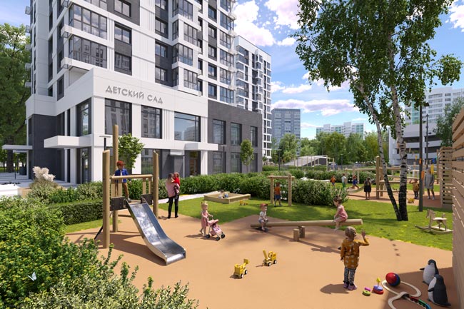 Кроме того, на территории «Зеленоград Ривьера» будет работать собственный детский сад, а буквально по соседству находятся школы, детские клубы и поликлиника.