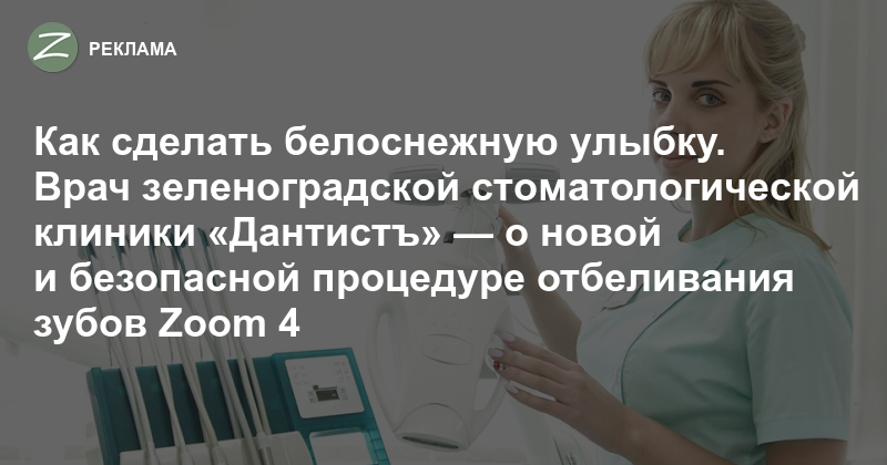 Мы продолжаем беседовать с врачами клиники «Дантистъ» о новинках эстетической медицины. Белые зубы хотят иметь все, и наука не стоит на месте — появляются новые технологии отбеливания. «Дантистъ» предлагает новую процедуру — отбеливание Zoom 4. Что это такое, как это делается и как закрепить эффект голливудской улыбки, подробно рассказала стоматолог-терапевт Наталья Урядова