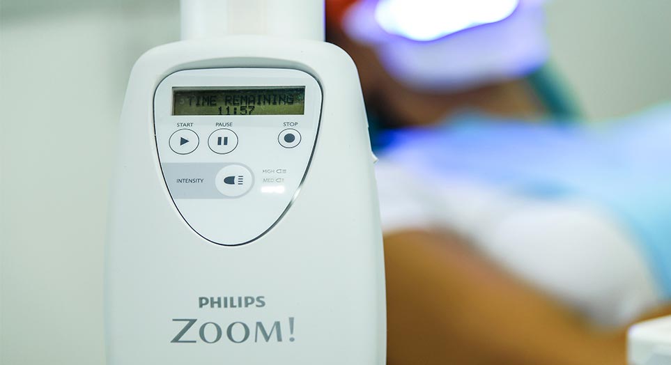 — Технология отбеливания зубов Zoom 4 — это новейшая разработка компании Philips. Это отбеливающая система с использованием светодиодной лампы с «холодным» светом. В качестве активного компонента отбеливающего геля используется 25-процентная перекись водорода. В предыдущих модификациях — Zoom 1,2,3 — использовалась система с ультрафиолетовой лампой, что приводило к нагреванию зубов и появлению повышенной чувствительности и болей во время процедуры и после неё. Zoom 4 со светодиодной лампой отличается как раз тем, что побочные эффекты практически исключены, это безопасная и комфортная система отбеливания. И более эффективная — за один сеанс можно сделать зубы светлее на восемь тонов.