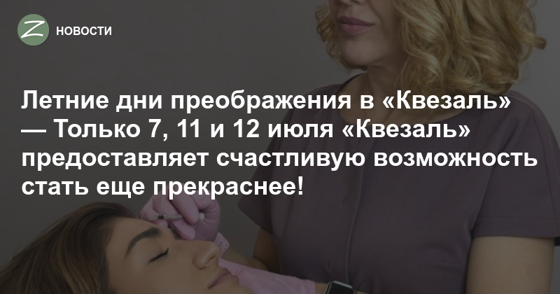 Летние дни преображения в «Квезаль» — Только 7, 11 и 12 июля «Квезаль» предоставляет счастливую возможность стать еще прекраснее! 06.07.2025 Реклама ООО Центр Косметологии «Квезаль» ИНН:7735187566 еrid:2VtzqvgkfKV