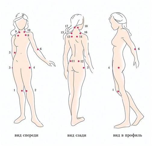 Диагноз устанавливается при болезненной пальпации 11 и более точек из 18.