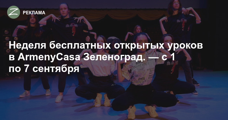 Очередной сезон в ArmenyCasa начинается с подарков. Всем новым ученикам студии предлагается неделя бесплатных открытых уроков для детей от 3 лет, подростков и взрослых. Попробуйте и выберите те направления, что по душе именно вам.