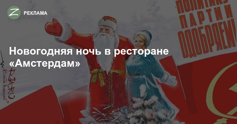 Ресторан «Амстердам» приглашает гостей встретить Новый Год в стиле «Назад в СССР»! Будет тематическое оформление, специальное меню, праздничный торт, новогодняя программа с Вадимом Ленским.