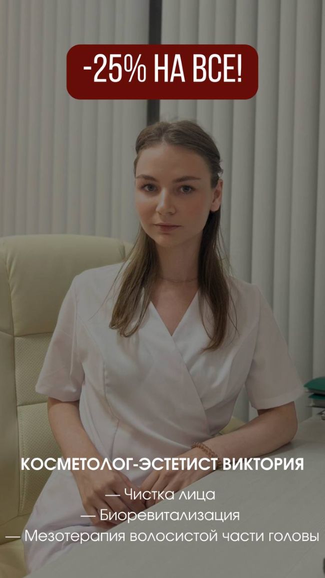 - У косметолога-эстетиста Виктории: Скидка 25% чистку лица, биоревитализацию и мезотерапию волосистой части головы.