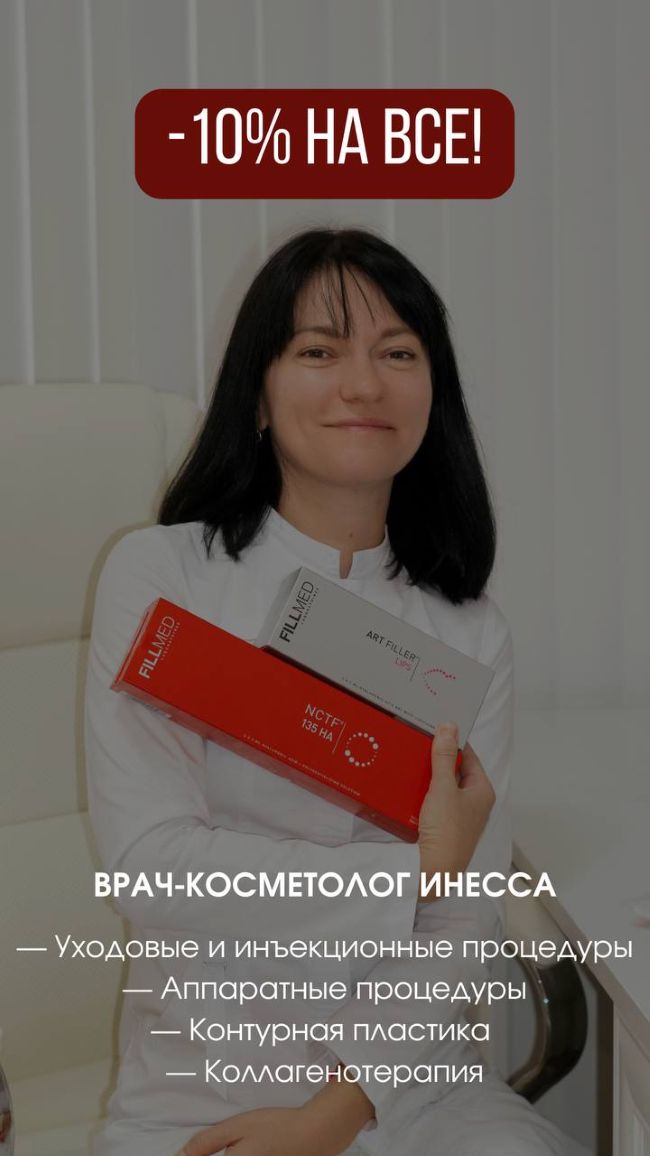 - У врача-косметолога Инессы: Скидка 10% на все процедуры.