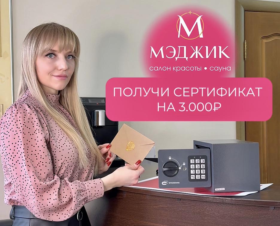 В салоне спрятан сейф с сертификатом на 3000 рублей. Каждый гость может попробовать открыть его и забрать приз.