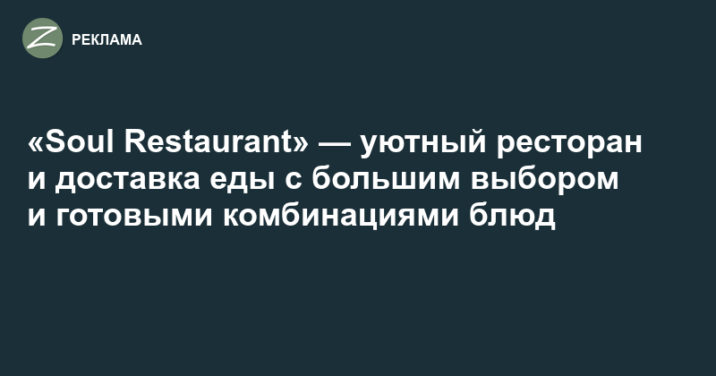 Служба доставки «Soul Restaurant» — единственная служба доставки еды с большим выбором ресторанных блюд, которые готовят отличные повара специально для вас «из-под ножа»!
