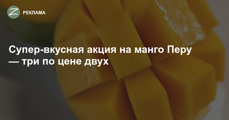 Супер-вкусная акция в магазине «Экзотические фрукты» — манго Перу 1+1=3. Всего 1200 рублей за 3 коробки манго. Также много других экзотических фруктов и овощей по оптовым ценам.