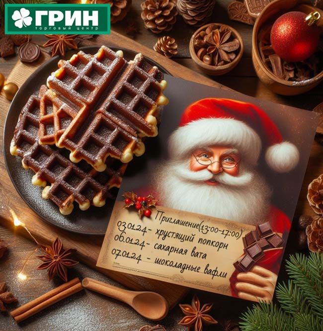 В преддверии самого волшебного праздника- Рождества Христова в ТЦ «Грин» бесплатно будут угощать всех посетителей воздушной ватой, попкорном, ароматными венскими вафлями.