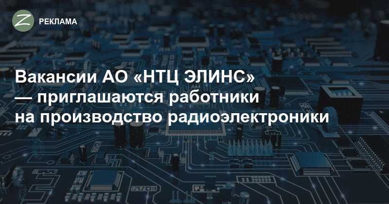 АО «НТЦ ЭЛИНС», крупное предприятие по производству высокотехнологичных электронных изделий, в связи с расширением производства и открытием новых направлений ведёт набор специалистов.
