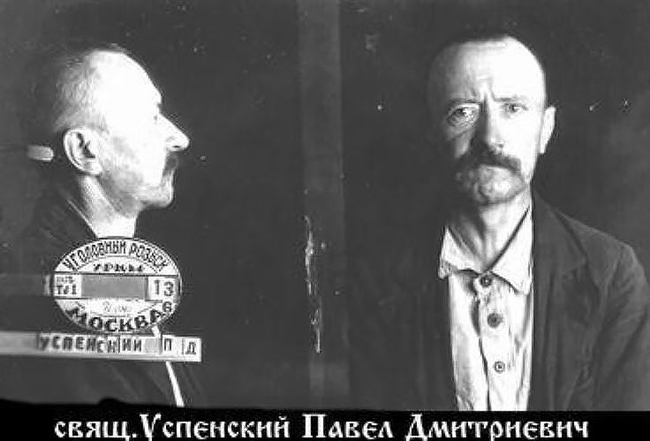 В марте 1938-го Павла Успенского арестовали по ложному доносу. Сам доносчик позже отрекся от своих слов, говоря, что допрашивали его ночью, торопя: «Давай наговаривай больше» и «Давай скорей подписывай, надо ликвидировать духовенство». И обвинения, и допросы были формальностью — через три месяца тройка НКВД приговорила отца Павла к расстрелу. После приговора его перевели в Таганскую тюрьму в Москве, где была сделана последняя фотография.