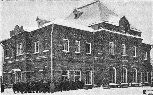 На первом этаже было три больших светлых класса, парадный зал, ученическая столовая, кладовая и кухня. На втором — комнаты учеников, квартиры учителей, аптека, библиотека в 1500 книг, не считая учебных пособий. В здании имелся водопровод, обслуживающий кухню и ученическую умывальню. Рядом со школой построили баню и погреб. На ручье устроили плотину, образовался пруд, откуда брали воду для бани и полива школьного огорода. Вокруг был разбит парк с липовыми, берёзовыми, еловыми и дубовыми аллеями. Школа торжественно открылась 30 августа 1898 года, в день памяти покойного императора Александра III, и получила его имя.