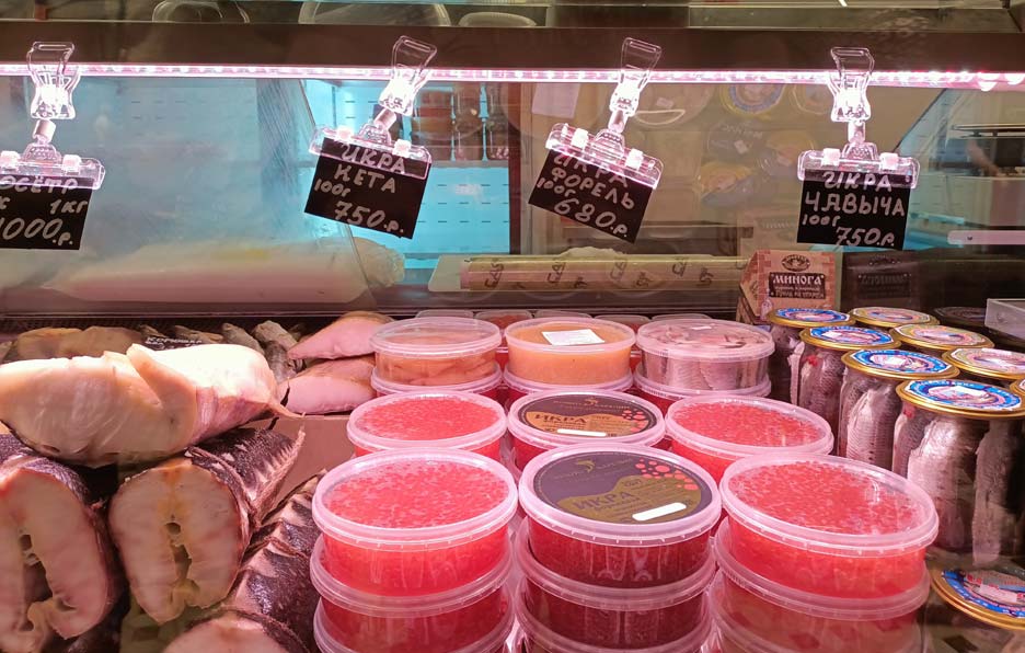 Икра (100 гр): форель — 680, чавыча — 750, кета — 750