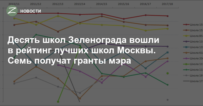 Топ-20 школ общего рейтинга станут обладателями грантов мэра Москвы I степени по 30 миллионов рублей — зеленоградских среди них нет. Следующие 50 школ, в том числе зеленоградские 1557 и 1528, получат гранты II степени по 20 миллионов рублей. Еще 100 школ, в том числе зеленоградские 853, 1194 и 1353 — гранты III степени по 10 миллионов рублей. Также определены получатели 50 грантов по 4 миллиона рублей за создание в школах благоприятной социокультурной среды, в зеленограде это школы 618 и 2045. С 2018 года гранты можно использовать только на материальное поощрение педагогов и других сотрудников. Раньше их разрешалось потратить на развитие материально-технической базы школ.