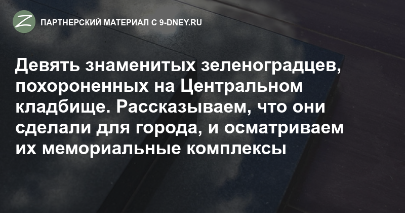 Первый участок Центрального кладбища Зеленограда поражает разнообразием памятников и знакомыми многим фамилиями. Здесь похоронены известные в городе люди. Вместе с компанией «9 дней» рассказываем их историю и разбираем особенности их мемориальных комплексов.