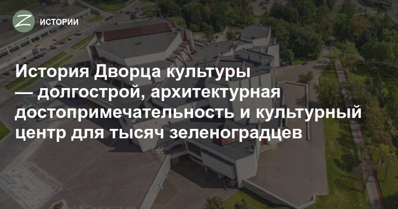 О том, что в Зеленограде непременно будет Дворец культуры, «отцы города» — архитекторы знали задолго до того, как был заложен его первый камень. Первые чертежи будущего здания были сделаны в 1960 годы, а сам дворец задумывался как часть модернистского архитектурного ансамбля центра Зеленограда.