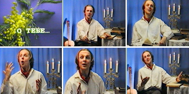 Снимали в небольшой комнатке-студии, реквизит подобрал сам артист. Съёмку вёл директор «Элитекса» Александр Авраменко. Павел Викторович читал в кадре стихи Пушкина, Фета, Блока, Гумилева, Кузьмина, и его исполнение заворожило всех сотрудников. «До такой степени, — вспоминал Алексей Блажиевский, — что когда Павел читал отрывок из Пушкинского «Графа Нулина» и произнёс фразу: «Ах! Я забыл ей имя дать…» , — все успели слегка вздрогнуть, подумав, что Паша пропустил кусок текста, а он продолжил: «…муж просто звал её Наташа, но мы…».