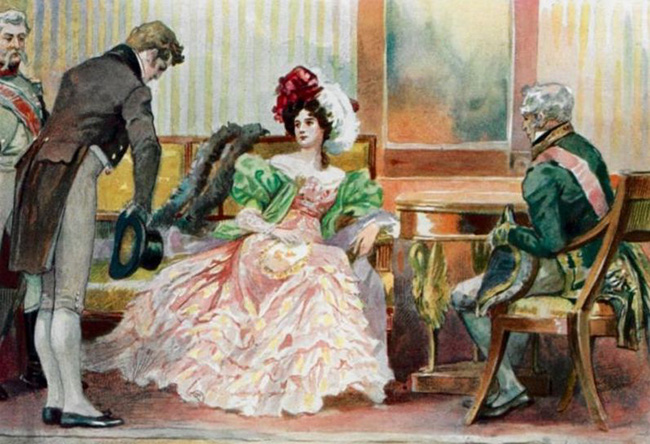 Встреча с Натальей Дмитриевной — женой «важного генерала», блиставшей красотой и умом в толпе поклонников — произвела на него сильное впечатление. Повеса не замедлил пристать к свите её обожателей, рассчитывая на былую благосклонность, однако был уничтожен её благородным отпором как низкий ухаживатель за чужой женой.