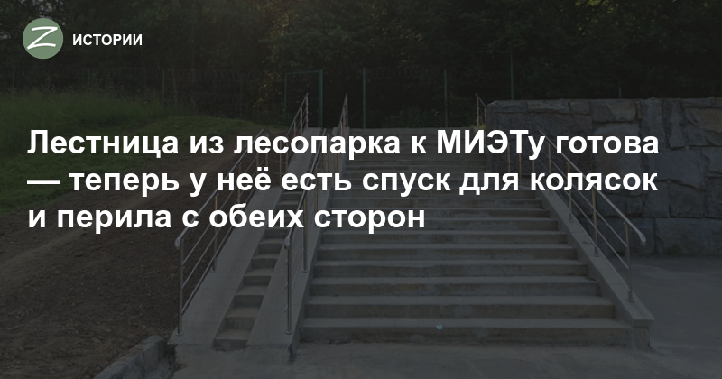 Завершился ремонт лестницы, ведущей от лесопарка к спорткомплексу МИЭТа — по ней ходят не только студенты, она расположена на популярном пешеходном маршруте. Нынешней весной некоторые ступени совсем уж расползлись, поэтому в университете решили её отремонтировать. А заодно, учитывая пожелания горожан, сделать перила и пандус для колясок. На фотографиях — последние стадии ремонта и его результат.