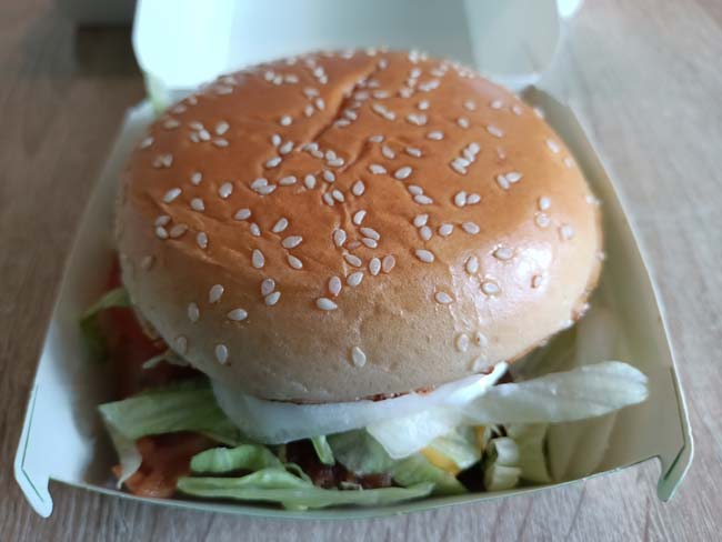 Пока это выглядит как безымянный фастфуд. Новое название «Вкусно — и точка» удалось найти только на в киосках для самостоятельного заказа. Почти не встречается и новый логотип. Пакеты с заказами навынос и коробочки с едой не брендированные. В остальном интерьер остался прежним.