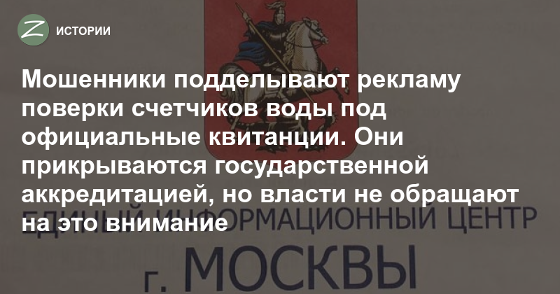 Мошенники, навязывающие ненужную поверку счетчиков воды, начали подделывать свои объявления под квитанцию с квартплатой (ЕПД), незаконно используя логотип центра госуслуг «Мои документы». Но там лишь призывают к бдительности. За мошенническими объявлениями стоит сразу несколько организаций с государственной аккредитацией.