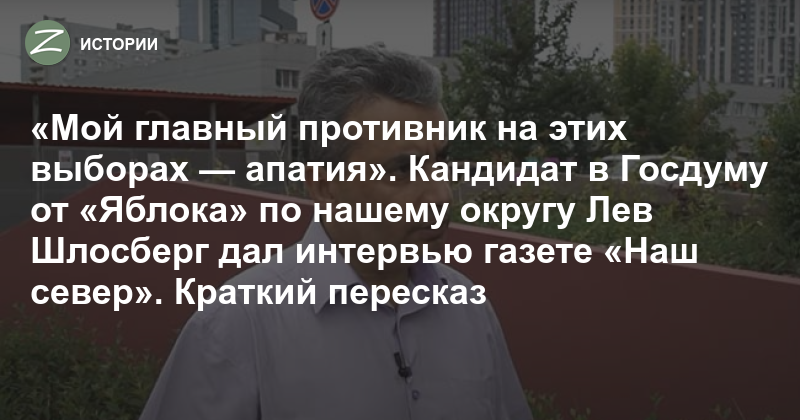 Окружная избирательная комиссия 207-му округу, в который входит и Зеленоград, вчера официально зарегистрировала кандидатом в депутаты Госдумы от партии «Яблоко» политика Льва Шлосберга. В интервью газете «Наш север» он рассказал как собирается победить.