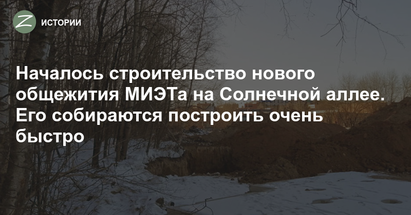 На пустыре возле Солнечной аллеи, отведённом под строительство нового общежития МИЭТа, в марте началось движение — появилась строительная техника и информация о стройке, стартовали земляные работы. За прошлый год вуз расторг контракт с одним подрядчиком, по которому строительство так и не началось, и нашёл другого — при этом сроки работ формально сократились.