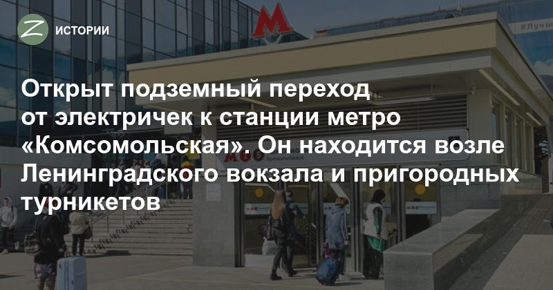Открывшийся переход — это боковая ветка пешеходного тоннеля, через который пассажиры электричек Ленинградского вокзала спускались в метро много лет. Этот ближайший к пригородным платформам вход закрыли на ремонт шесть лет назад. После этого пассажиры Ленинградского направления шли к единственному входу в метро «Комсомольская» сначала по улице, огибая здание Ленинградского вокзала, потом по подземному переходу, смешиваясь с потоком пассажиров с Ярославского вокзала. Ближайший к электричкам Ленинградского направления тоннель закрыт, он является цокольной частью здания бывшего Московского железнодорожного агентства. Здание продано под размещение в нём многофункционального комплекса. Судьба тоннеля пока неизвестна.