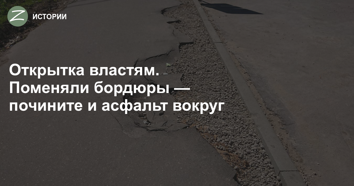 По всему городу меняют бордюры. Отдельный вопрос — зачем менять бортовой камень (так он официально называется), который не выглядит разбитым. Но теперь ещё, после замены, вокруг новых бордюров неделями не заделывают асфальт.