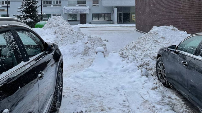 После публикации открытого письма о машинах, просачивающихся на пешеходную площадь Юности, въезд на площадь через здание фитнес-центра «Электрон» оказался перекрыт — теперь его преграждают большие кучи снега, то ли намеренно, то ли случайно оставленные трактором.