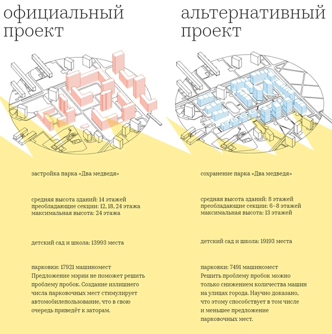 Мы не оправдываем таких недобросовестных водителей, но проблема явно есть, и префектура о ней знает. Тогда зачем наступать на те же грабли, разрешать убирать из нового проекта многоуровневые паркинги и переносить их строительство на потом? У застройщика нет никакой мотивации строить инфраструктуру после продажи квартир. Он получил прибыль, дальнейшая судьба жителей района его мало волнует. Зачем заранее допускать повторение транспортного коллапса?