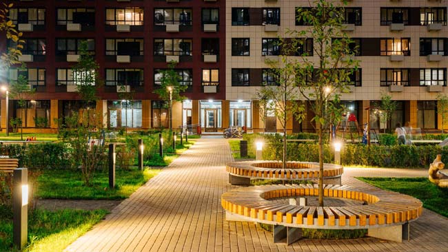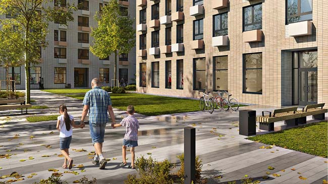 Современный жилой район состоит из плотной квартальной застройки с домами средней этажности (5-8 этажей). Такой масштаб гораздо комфортнее для человека, в отличие от огромных башен на тысячи квартир. В небольших домах всё ещё реально знать своих соседей. Люди в лифте не будут для вас просто какими-то незнакомцами, живущими на 10 этажей над вами, вы будете вместе участвовать в жизни вашего дома. Такая связанность жителей делает район безопаснее, потому что любой незнакомец выделяется и вызывает вопросы. А из-за увеличения количества домов растёт и количество коммерческой недвижимости на первых этажах, лучше работает торговля, появляется больше рабочих мест.