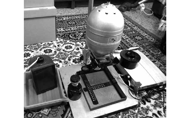 Финальная стадия получения бумажных отпечатков происходила в мягком свете красного фонаря, как правило, в закрытой наглухо ванной комнате (в щель под дверью забивался половик), где с помощью громоздкого устройства — фотоувеличителя — поток яркого света, бьющий из металлического шара, через линзы объектива проецировал негативное изображение с кадра пленки на лист фотобумаги. Фотоувеличитель в такой ипостаси напоминал нечто с иллюстрации к текстам о «тарелочках» инопланетного происхождения, сканирующих Землю и ее обитателей.