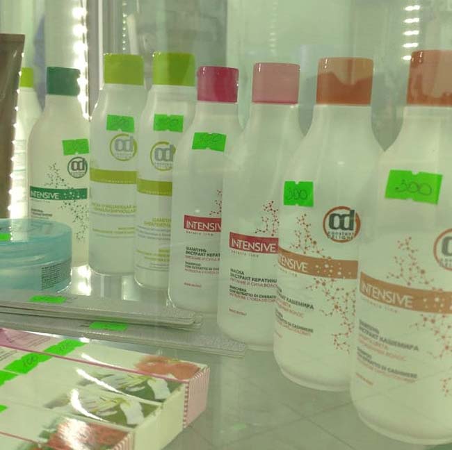 Также в салоне продаются средства для ухода за волосами (шампуни, бальзамы, маски) от фирм-производителей Constant Delight и Estel.
