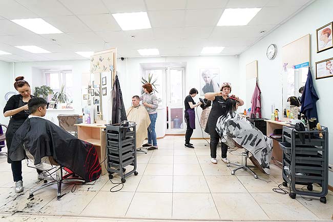 Здесь одновременно работают пять мастеров, которые обслуживают мужчин, женщин и детей.