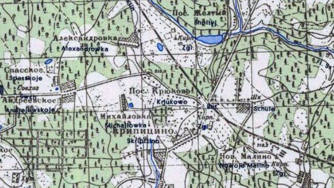 Многолюдный посёлок Крюково был окружен лесом. Он тянулся справа от дороги и доходил до станционных построек.