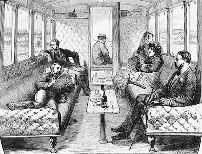 Вагоны первого класса вначале были «диванными». Каждый пассажир получал место на двухместном диване (можно было и прилечь, если сосед не возражал). До появления спальных полок пассажиры первого и второго классов ехали сидя или полулежа на диванах или в креслах, укрываясь пледами или шарфами.