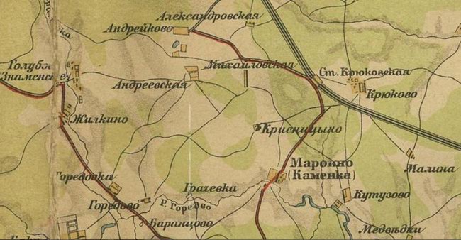 Первый советский путеводитель «Вокруг Москвы», изданный в 1930 году, описал этот путь. От станции Крюково дорога шла через деревню Андреевка, а оттуда в усадьбу Голубово (нынешнее Голубое). От Голубова — к Пятницкому тракту, по нему через версту проезжали деревню Еремеево, а оттуда через Алексино и Кашино путь вёл к Воскресенску.