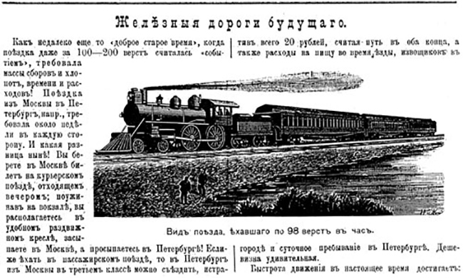 «Вы берёте в Москве билет на курьерский поезд, отходящий вечером; поужинав на вокзале, вы располагаетесь в удобном раздвижном кресле, засыпаете в Москве, а просыпаетесь в Петербурге», — цитирует журнал «Наука и жизнь» дореволюционное издание.