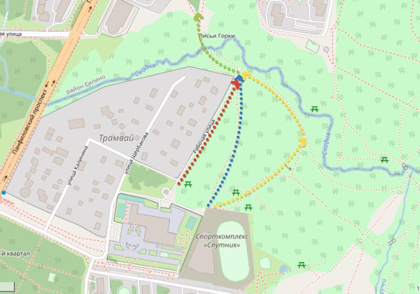 Альтернатива пешеходным дорожкам, которые будут перекрыты — это тротуар по другой стороне автомобильного проезда между Панфиловским проспектом и Дворцом творчества. При этом и дети, и взрослые вынуждены будут дважды пересекать автодорогу: один раз по «зебре» без светофора у выезда на Панфиловский проспект, второй раз — без всякой зебры на углу территории Дворца творчества, на перекрёстке дорог внутрь 9 микрорайона и в посёлок «Трамвай».